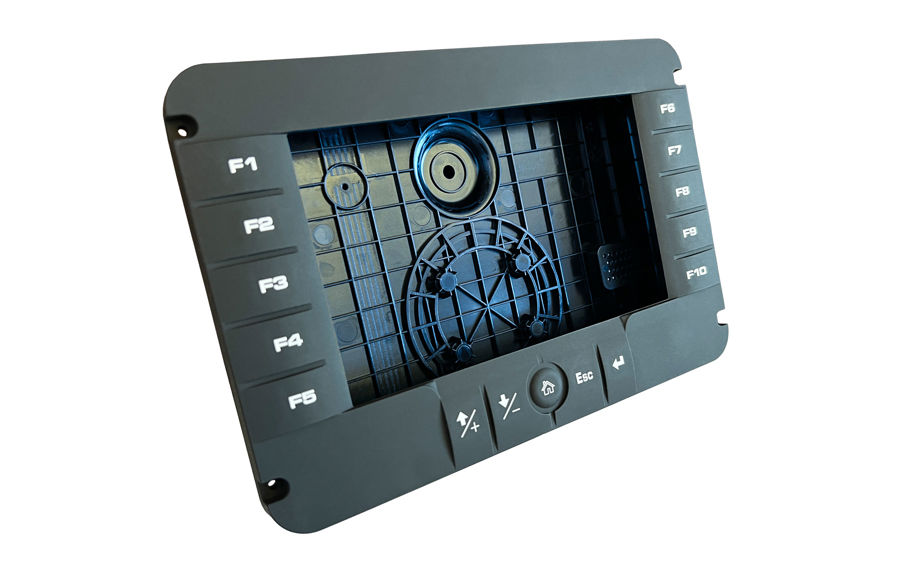 Tastatur på en bagplade er en meget almindelig HMI løsning, der gør slutsamlingen af tastaturet lettere i jeres produktion. Tastaturet er som regel et folie- eller silikonetastatur. Bagpladen er enten metal eller plastik, som plade eller housing, afhængig af jeres produkt og produktionskrav.