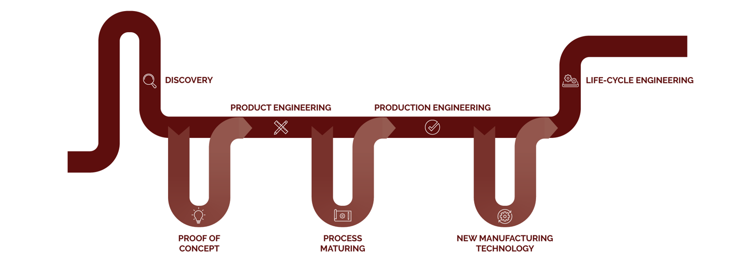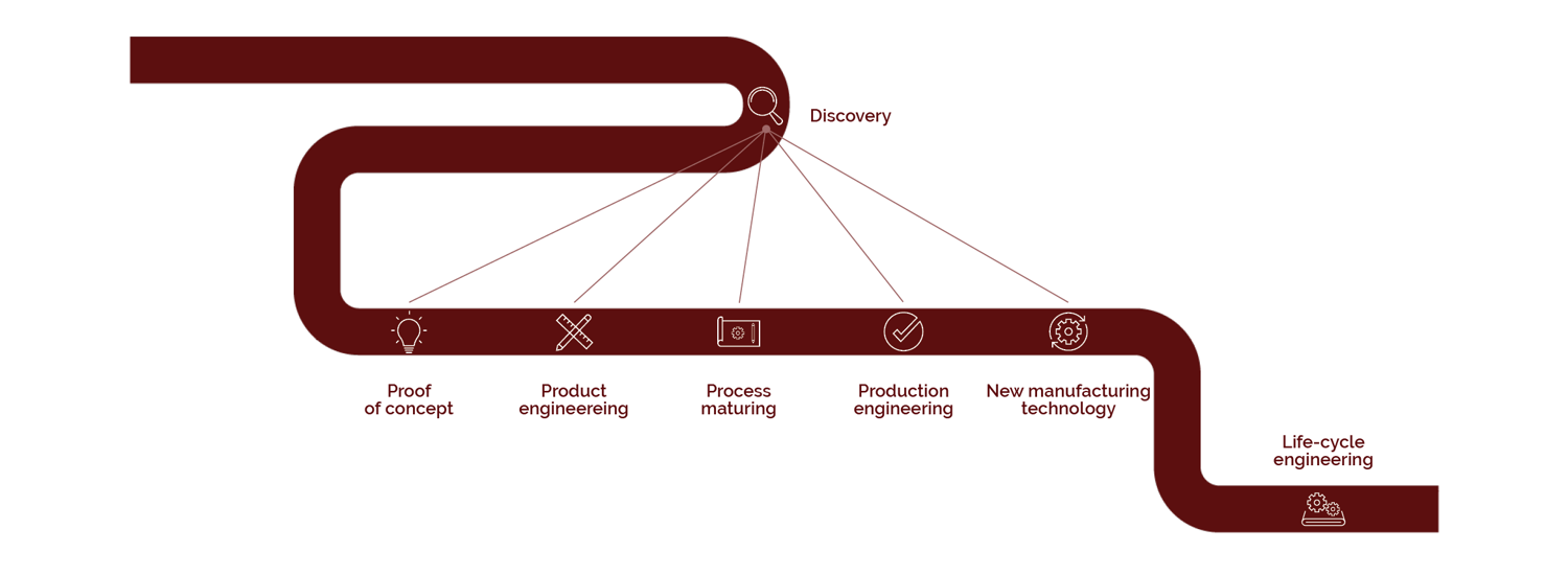 Hvis løsningen kræver enten nye materialer eller ny, uprøvet funktionalitet, vil vi undersøge og gennemgå forskellige retninger for at verificere og løfte dit projekt fra idé til gennemprøvet koncept.
