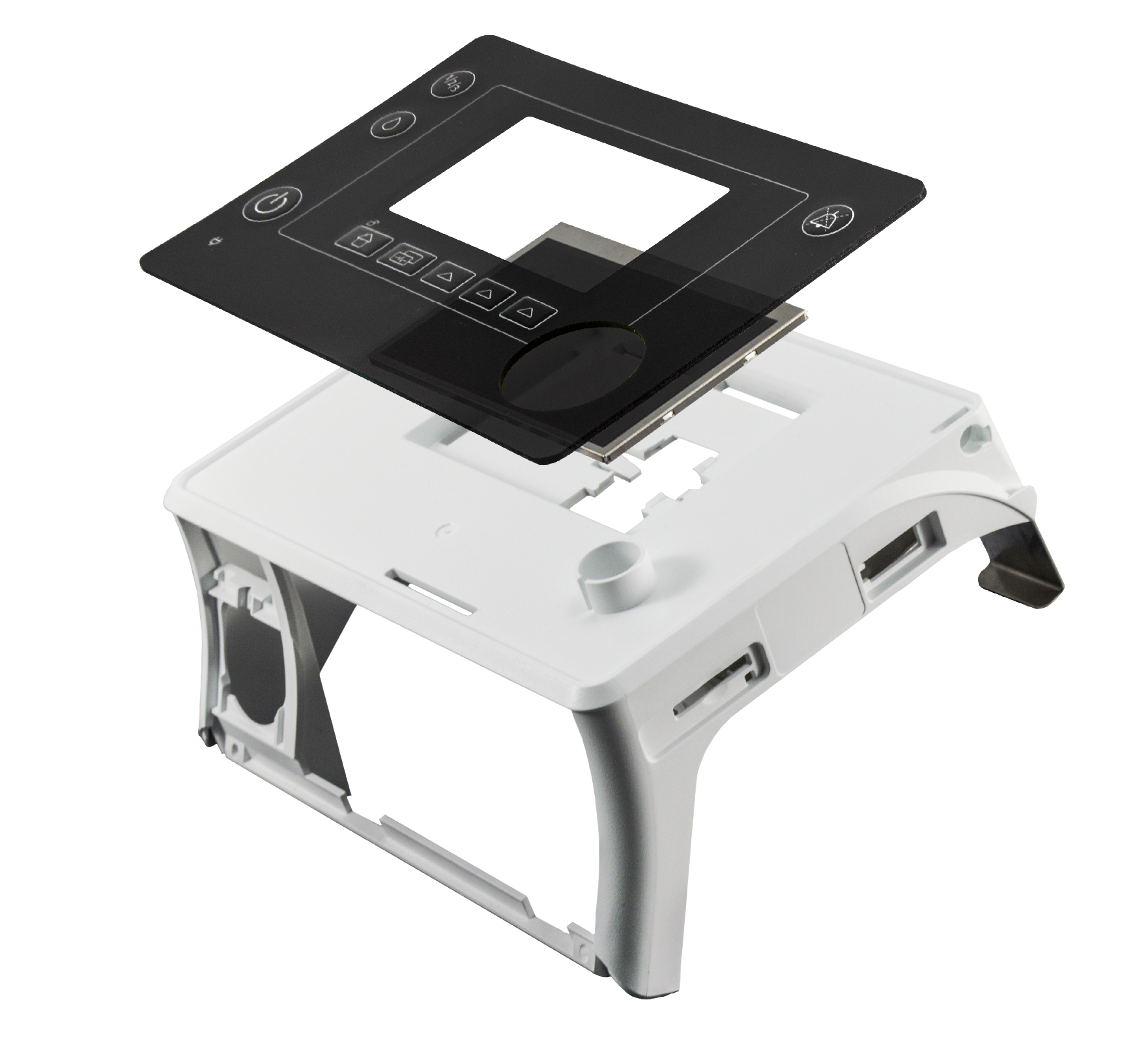 En mere kompleks løsning kunne omfatte flere funktionelle lag, som er indbygget i tastasturet og monteret på en housing, f.eks. EMC afskærmning, lysblok, osv.