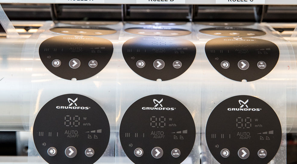 Das dänische Unternehmen Grundfos ist einer der weltweit führenden Pumpenhersteller. Für einen ihrer „High-Runner“ – eine Umwälzpumpe – wurden wir als Lieferant für die grafischen Overlays ausgewählt. Diese Partnerschaft ist ein gutes Beispiel für unsere Fähigkeit, Großserienproduktionen mit höchster Präzision und Effizienz zu realisieren.