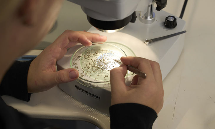 Im Rahmen unseres Services führen wir umfassende Tests und Qualitätskontrollen aller mikrogedrehten Komponenten durch – exakt abgestimmt auf die Anforderungen unserer Kunden. Mikroskopische Prüfungen und hochpräzise Messtechniken gewährleisten, dass die Bauteile die geforderten engen Toleranzen einhalten. Monatlich prüfen wir über 2 Millionen Komponenten visuell und mikroskopisch, um eine konstant hohe Qualität sicherzustellen.